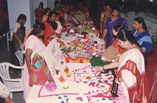 Exhibitions of handicrafts and garments made by the students in